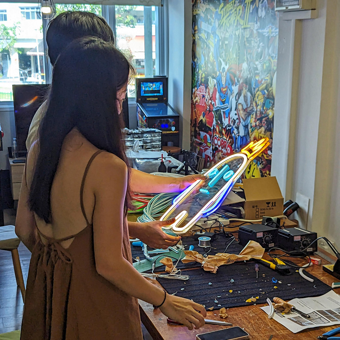 What an amazing workshop! From the initial design to fixing and setting up the machine, KJ has been super approachable and made it all so easy and smooth for us! My husband and daughter had a great bonding time at the workshop and weβre soo pleased with the final product! π KJ is very detailed and thoughtful. The base of the arcade machine is actually a storage! What a nice surprise! Would definitely recommend this workshop to family and friends.